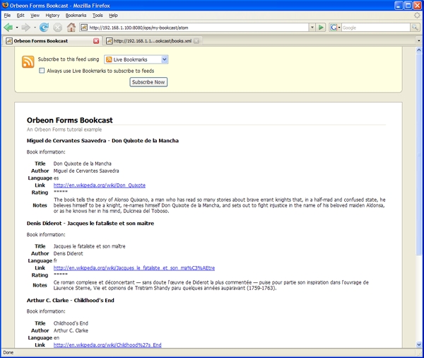title="Orbeon XForms Bookcast Tutorial Feed"