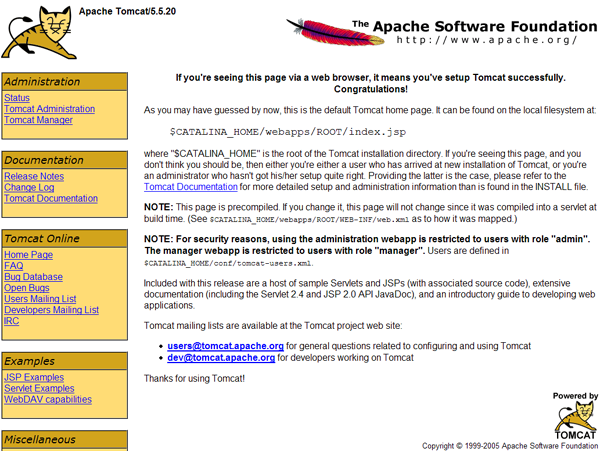TOMCAT_HOME/bin(startup.shorstartup.batdepending on your platform), or start Tomcat with the control application (Windows only).Open a web browser and access the following URL:
